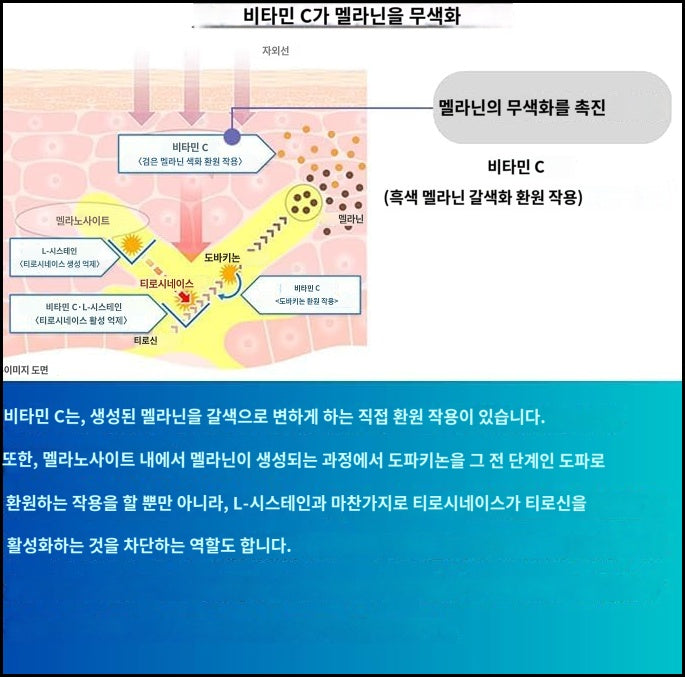 1.다음 증상의 완화 : 얼룩, 주근깨, 햇볕이나 흐림에 의한 색소 침착